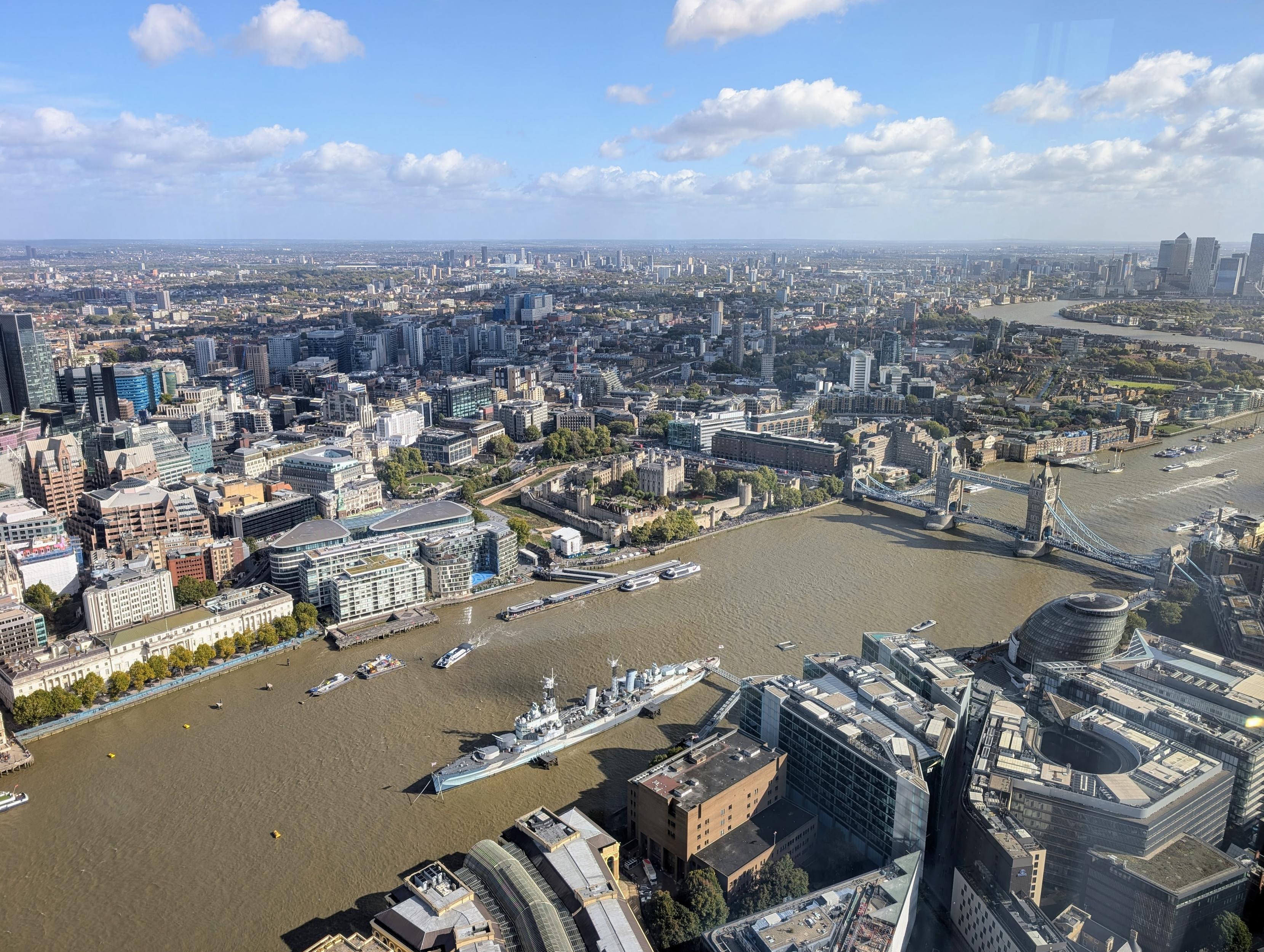 Blustery day in London. Went up The Shard to enjoy the view, then took the boat back up the river to Westminster.