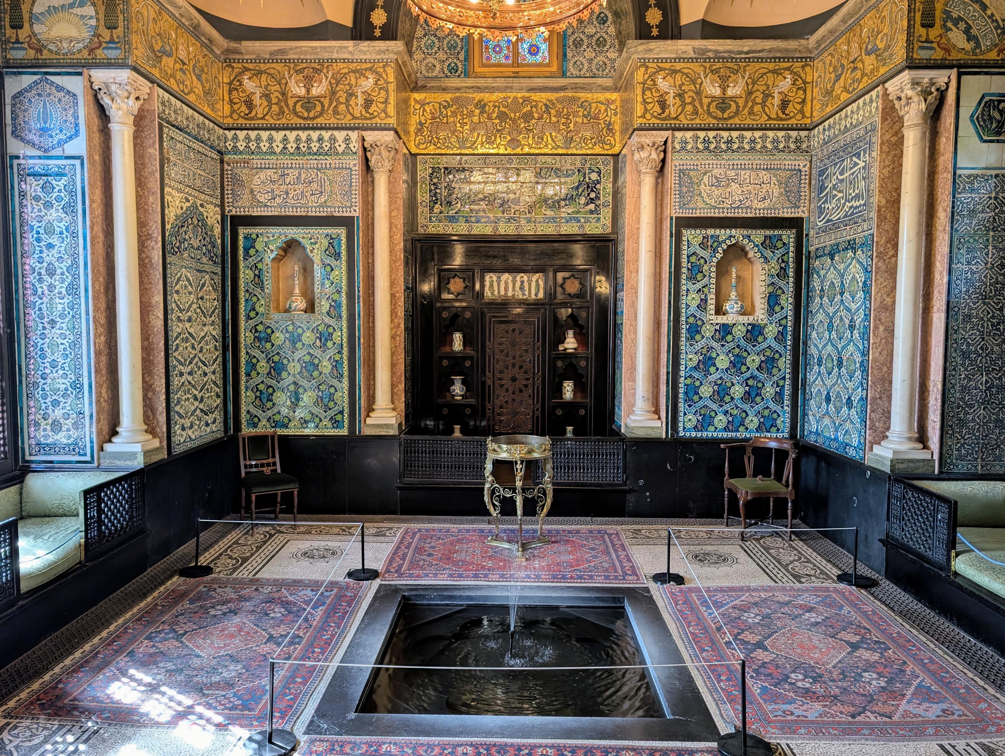 Leighton house, a successful 19th century artist and bachelor. The house is opulently decorated as a set piece to further his career as an aesthete.