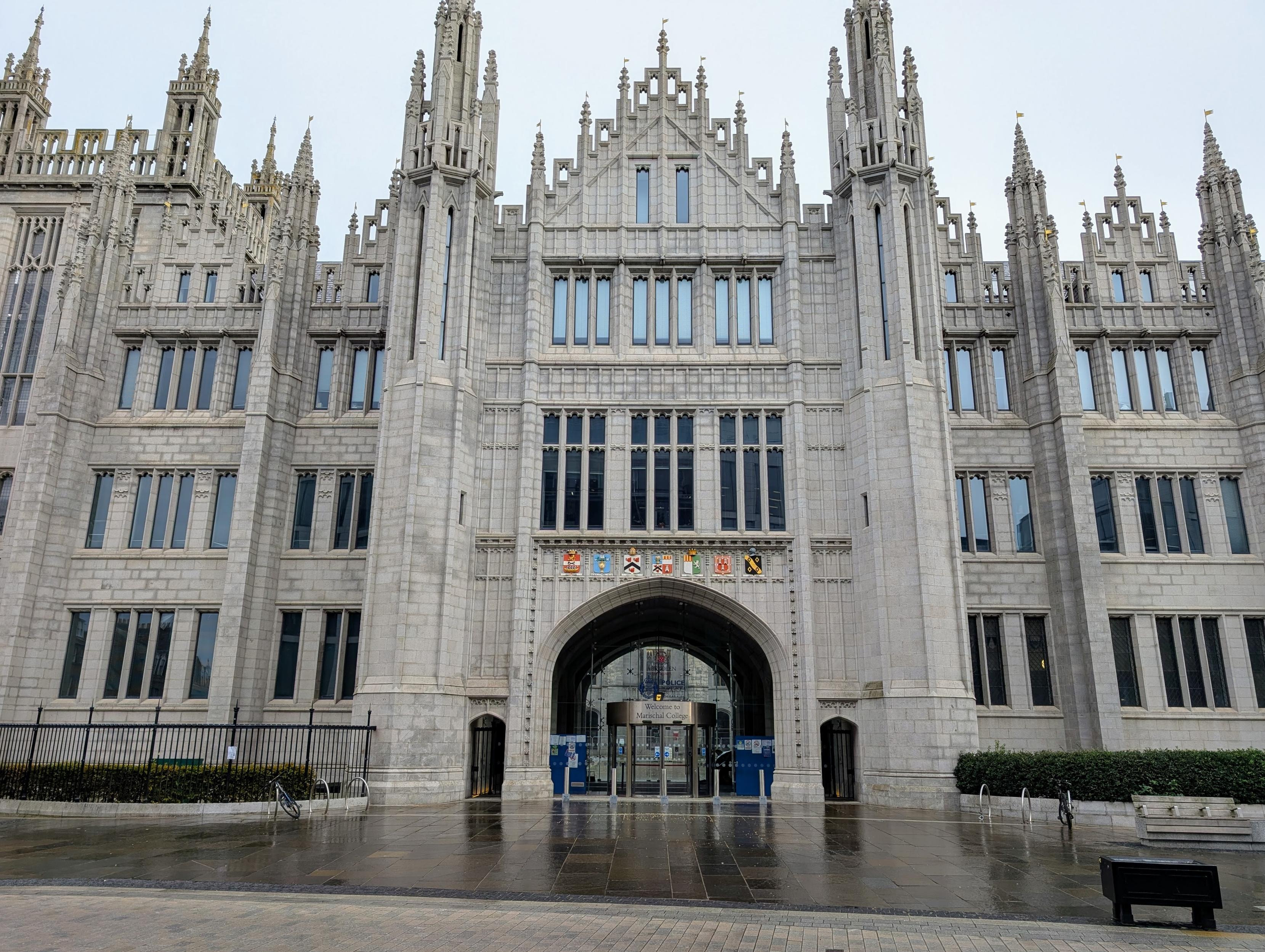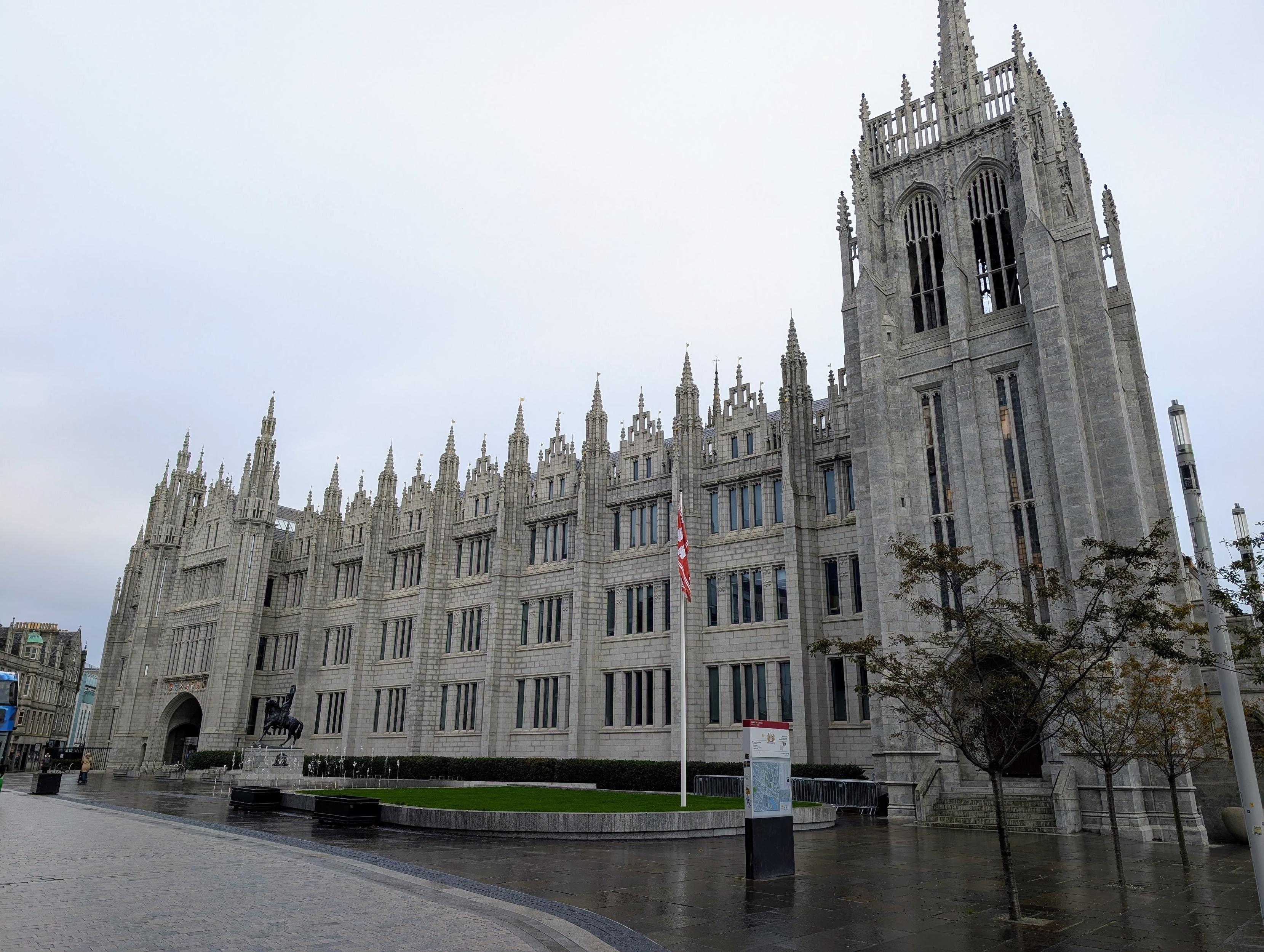 A lovely day touring around central Aberdeen. Here is Marischal College, an enormous 19th century granite building. The stonework is quite delicate, almost lacey albeit with simpler shapes.
