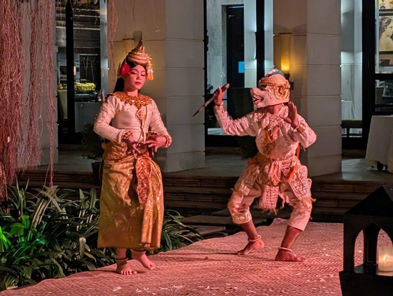 Cambodian food is good y'all. Dinner at the hotel with an Apsara dance performance.