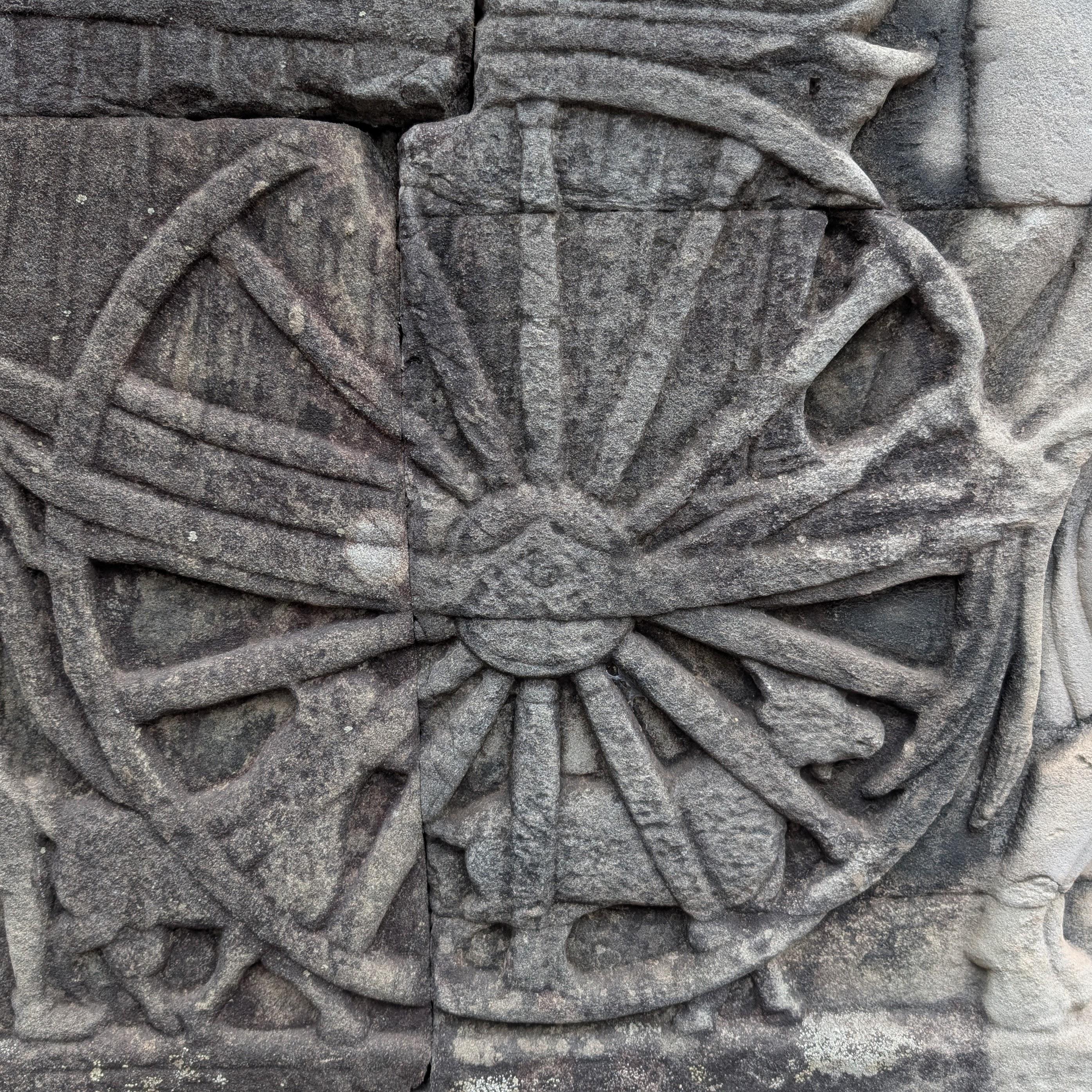 The coolest part of Bayon are all these relief sculptures of daily life. I love this detail of a goat standing behind a cart wheel. Quite visually sophisticated for a relief sculpture!