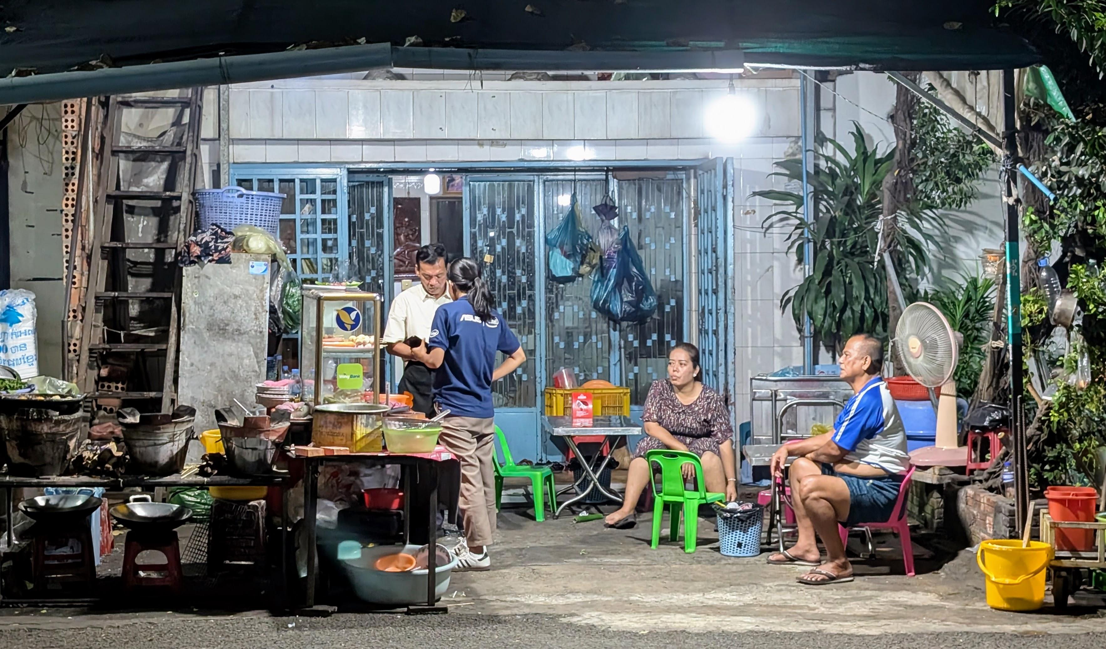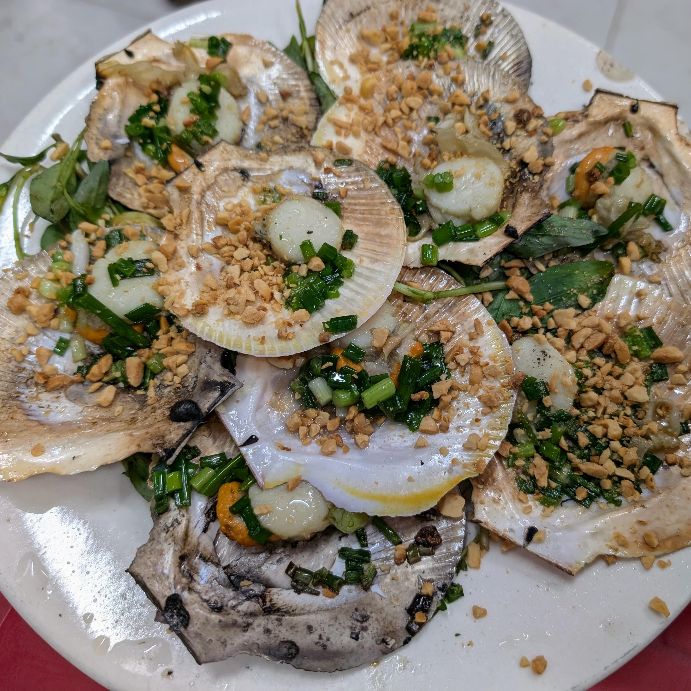 Crazy food experience at Ốc Loan, a famous shellfish restaurant specializing in river snails. And run by a remarkably costumed gentleman. Impressive seafood, overwhelming experience.
