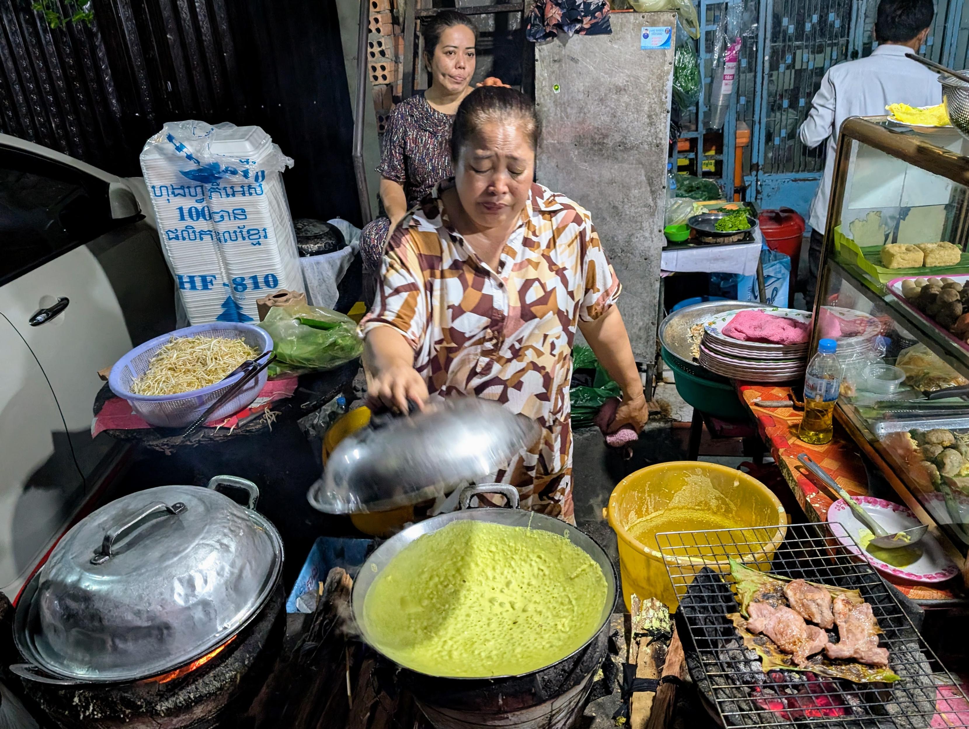 Highlight of the trip so far was last night, a Street Food Tour of Phnom Penh. Tuktuk tour of seven different casual food places, sidewalk restaurants and old grandmas making coconut desserts on the side of the road. Super fun and delicious!